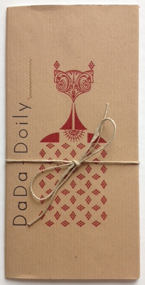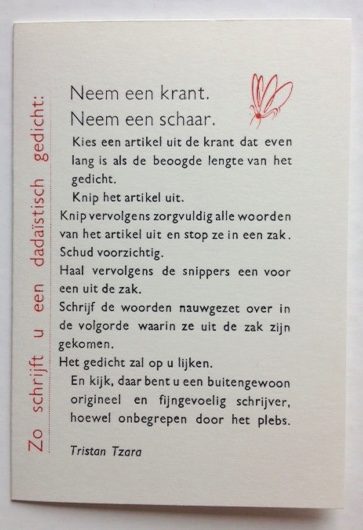 Dada Doily • Tzara’s instructies voor het schrijven van een gedicht kunnen in de blanco leporello uitgevoerd worden… Gedrukt op een slagpers. 10x21cm €8,-