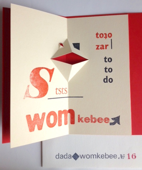 Dada Womkebee • eigen klankgedicht in beweging. 15×21 cm, kaart met omslag in bedrukte envelop, oplage 20. €12,50