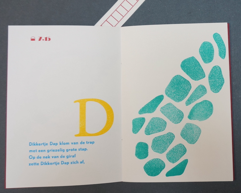 Bijdrage ‘D’ aan het Abecedarium, een drukkersproject van Jan Klerken/Acerpers. 40 Exemplaren zijn in dit boek terecht gekomen, van 10 maakte ik een eigen uitgave met omslag. Ik drukte één couplet van het gedicht Dikkertje Dap.