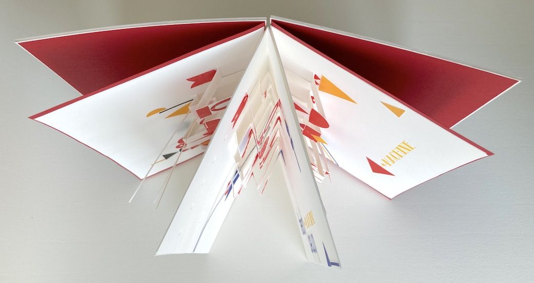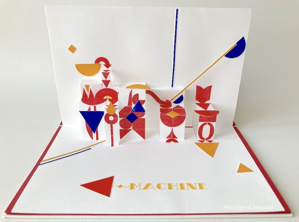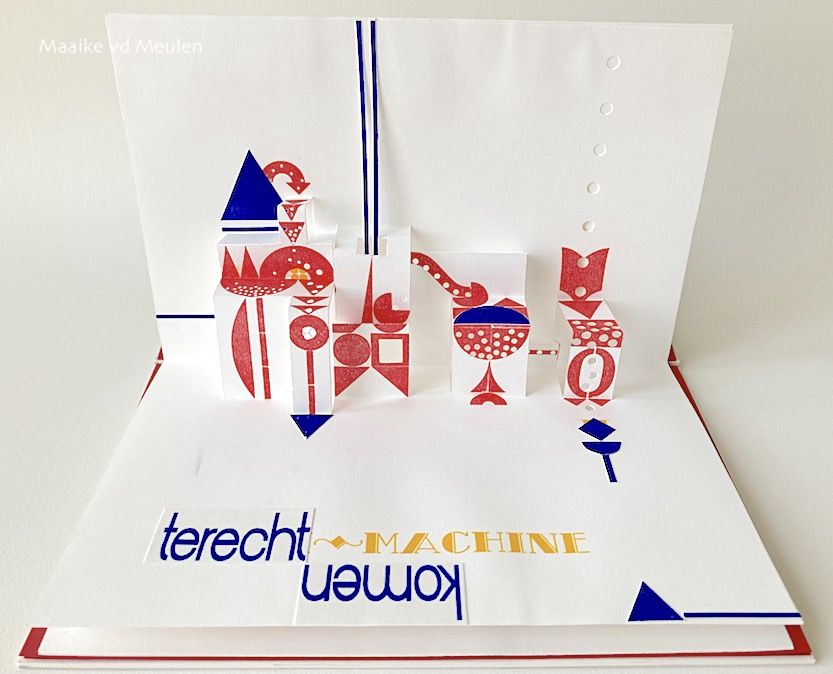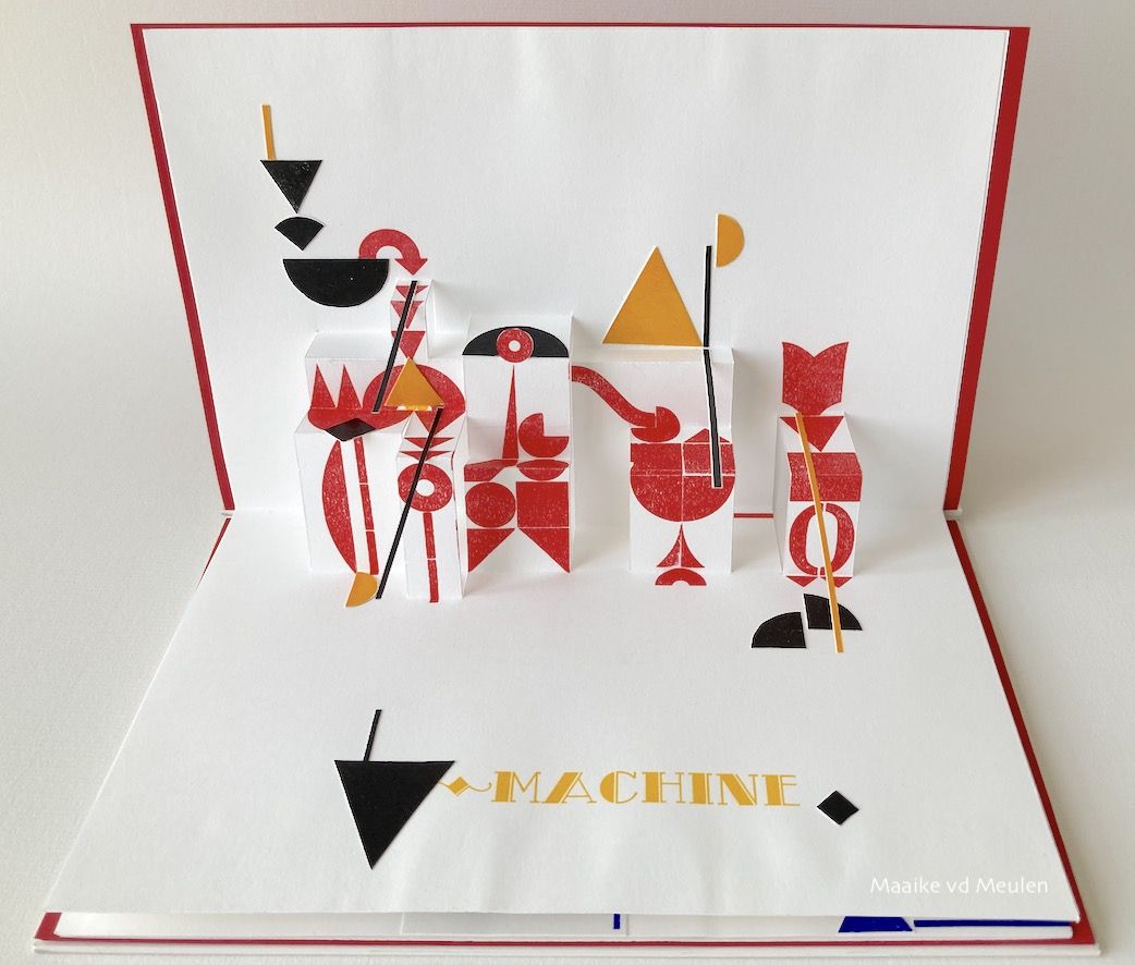 Uitvoering: boekje met 3 pop-up spreads, kirigami en collage. kaft van etalagekarton.